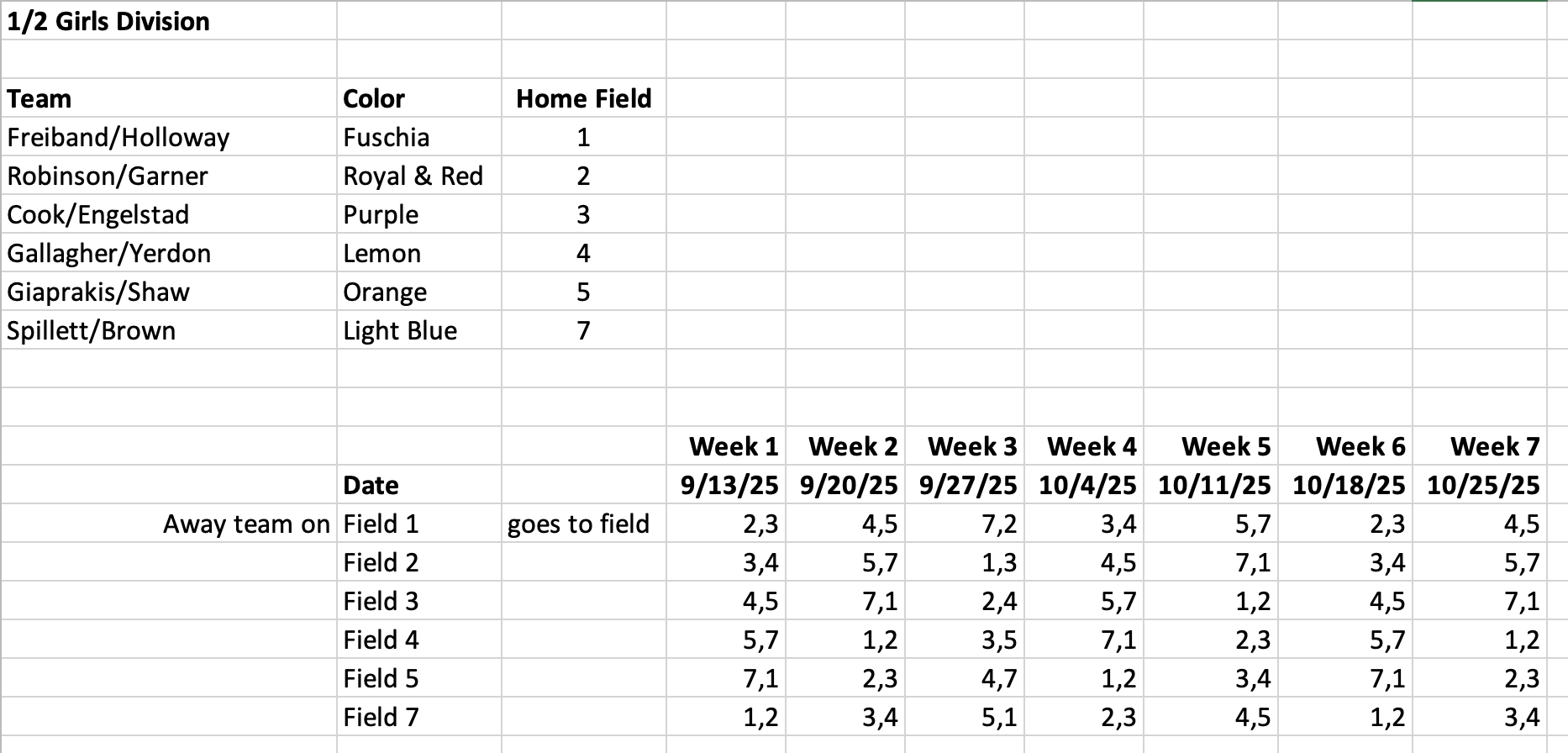 The 1st & 2nd grade girls division plays at Barry Park on Saturday mornings.